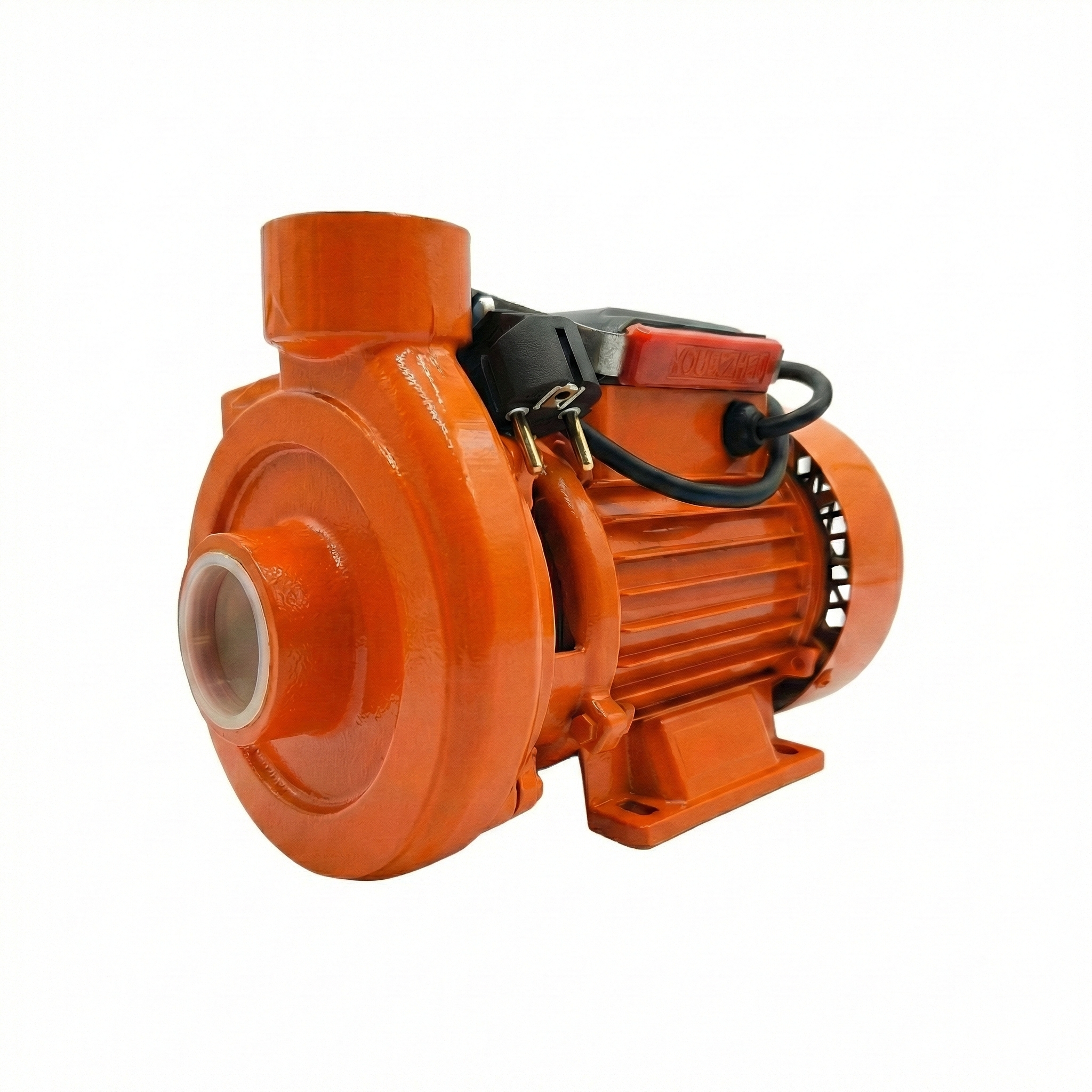 The prominent red thermal relay on top provides automatic motor protection against overheating or overload — extending pump life and reducing maintenance costs. A critical safety feature for unattended or continuous operation.